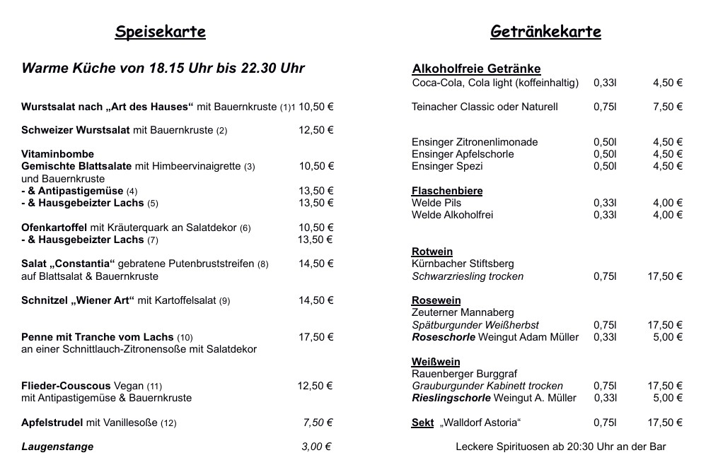 Dieses Jahr NEU: Sie können vorab köstliche warme Speisen in angenehmer, gemütlicher Atmosphäre genießen. Die Speisekarte finden Sie unter unserem Plakat.